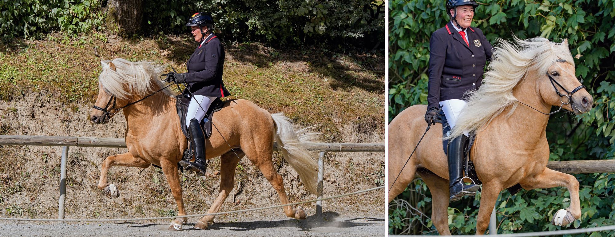 Elisabet bevorzugt den Tölt, aber trabt auch unter dem Reiter. Sie versucht es dem Reiter stets Recht zu machen und